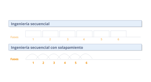 En la ingeniería secuencial cada fase del proceso se desarrolla de forma consecutiva, de modo que cada etapa de la secuencia no se inicia hasta que no ha concluido la anterior. Si durante el proceso se detecta algún error se retrocede hasta la etapa correspondiente para subsanarlo.
