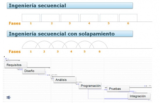 En la ingeniería secuencial cada fase del proceso se desarrolla de forma consecutiva, de modo que cada etapa de la secuencia no se inicia hasta que no ha concluido la anterior. Si durante el proceso se detecta algún error se retrocede hasta la etapa correspondiente para subsanarlo.
